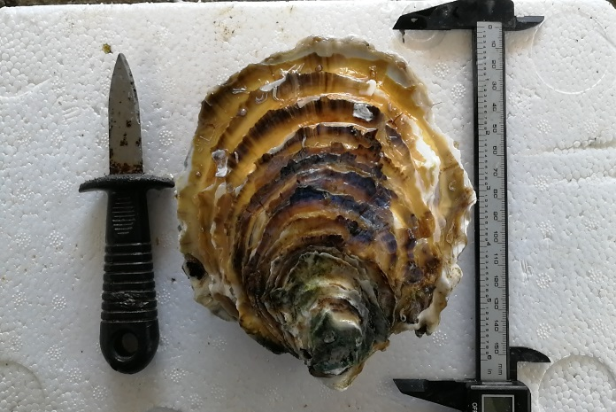 该品系是以2015年从广西钦州、北海3个不同野生群体中挑选的近江牡蛎为基础群体,以壳色和出肉率为目标性状,经连续4代选育而成。其氨基酸总量高达7.19g/100g,比普通大蚝含量高38.53%。 富含动物型类胡萝卜素,含量为6.9mg/kg,是普通大蚝的3.45倍,出肉率平均值12.5%。该新品系具有闭壳肌大、外套膜厚、口感清脆;壳型宽大美观、壳色靓丽;贝壳坚厚,收获不宜破壳;干运能力强,适宜长途运输;适宜反季节上市等优良性能。