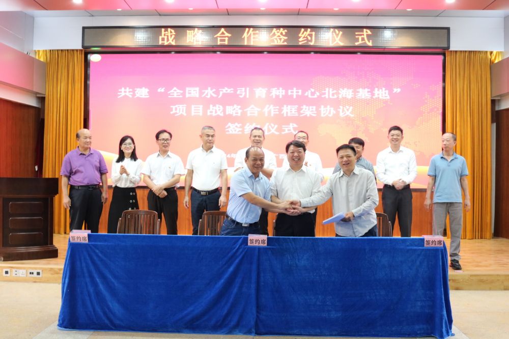 在与会人员的共同见证下,圆满完成了《中国农业出版社•广西壮族自治区水产科学研究院战略合作协议》、《共建“全国水产引育种中心北海基地”项目战略合作框架协议》和《共建“全国水产引育种中心钦州基地”项目战略合作框架协议》签约仪式。