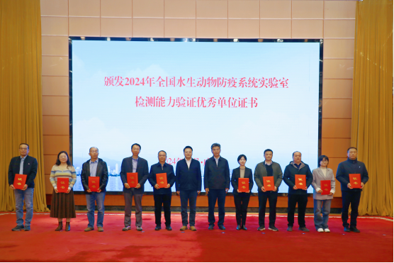 全国水产技术推广总站总工程师李清作出席会议,并作2024年全国水生动物防疫工作报告。会议发布了《2024中国水生动物卫生状况报告》,颁发了2024年全国水生动物防疫系统实验室检测能力验证优秀单位证书。广西水产科学研究院荣获“全国水生动物防疫系统实验室检测能力验证优秀单位”。