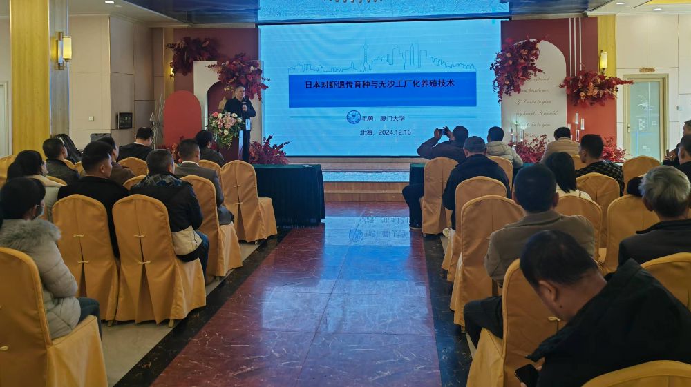 为提升小棚养殖技术,优化小棚养殖虾类品种结构,以新质生产力促进广西对虾小棚养殖产业提质增效降本和转型升级。12月16日,广西水产科学研究院国家虾蟹产业技术体系凡纳滨对虾种质资源与品种改良岗位科学家和防城港综合试验站团队联合广西科技重大专项现代特色农业“尖锋”专项《南美白对虾高产抗病 (逆)新品种创制》《南美白对虾设施化生态养殖模式研发与示范》,广西重点研发计划《新型复合丁酸菌剂的研发及其在对虾中的推广应用》项目组在北海市合浦县党江镇举办“2024年广西对虾小棚养殖技术培训班”。