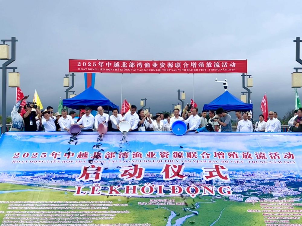 中越联合举行2025年北部湾渔业资源增殖放流活动